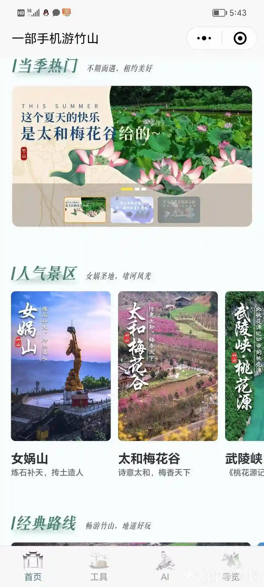 客户端讯(通讯员向继华、郭迪泽)拿一部手机,动一动手指,便可实现一键探路、一键订票、一键吃住、一键游览……7月20日,“一部手机游竹山”智慧文旅平台正式上线,标志着“一部手机游竹山”项目正式面向广大市民游客提供“吃住行游购娱”一站式服务。