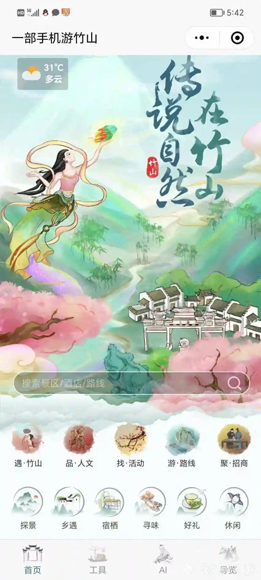 一键景点、一键住宿、一键支付、一键购物、一键美食、一键展馆……“一部手机游竹山”让旅游变得更方便。该项目是竹山全域智慧旅游项目之一,依托“互联网+旅游服务”,综合竹山全域旅游元素,全面覆盖游客在竹山游前、游中、游后的各项旅游需求。