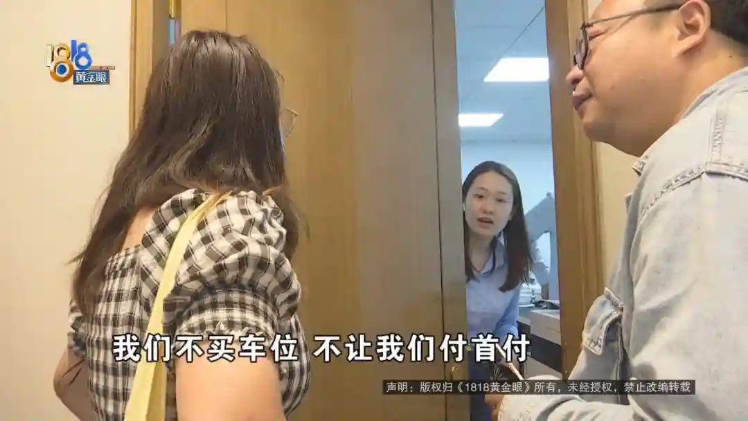 张女士:没有签任何的协议,因为是线上的云选房,就直接摇完号之后,直接线上付定金了。5月12号我们去付首付款的时候,开发商表示,如果我们不去购买车位,就不能去交首付款,我们在找不到人交首付款的时候,也去报警,找住建局、找房管局。