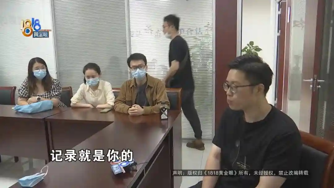前台有好几位工作人员,见到记者和张女士等一行人,直接起身走进了大厅茶水吧台旁边的房间,并关上了门。张女士等人追了上去。