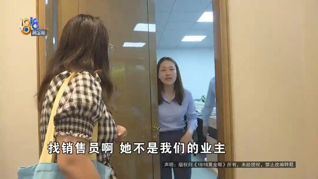 张女士:我们是业主,请您接待一下我们,你们不要躲着嘛,你们这是卖房子的吗?我们是付钱的那一方,怎么跟“做贼”一样呢?哦,还锁上门了。