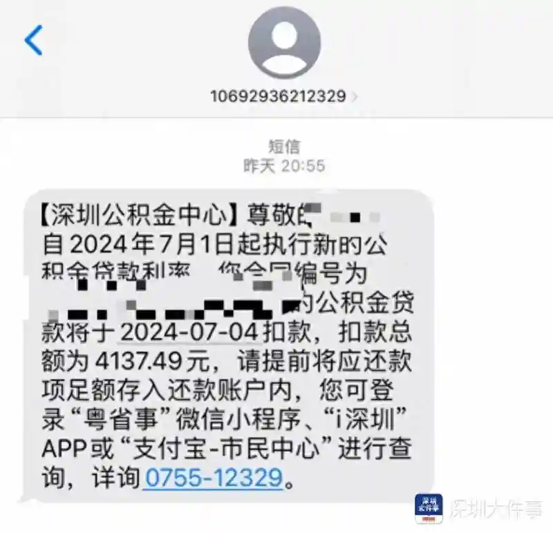 7月1日,市民李女士收到深圳市公积金中心的利率下调通知,发现还款金额比上个月多了50块。