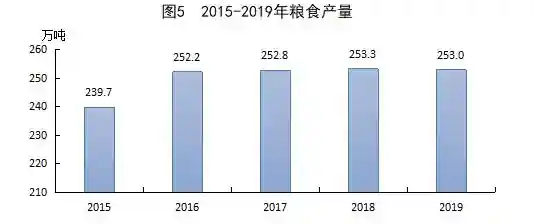 全年粮食产量253.02万吨,比上年减产0.1%。其中,夏粮产量12.26万吨,增产1.7%;秋粮产量240.76万吨,减产0.2%。全年谷物产量203.98万吨,减产0.3%。其中,稻谷产量123.04万吨,减产0.5%;玉米产量73.06万吨,减产4.0%。