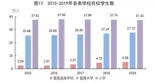 年末有各级各类学校1567所(不含普通高等院校、技工校、职业培训机构),在校生87.26万人,专任教师5.22万人。中等职业教育招生2.7万人,在校生6.67万人,毕业生2.39万人。普通高中招生2.83万人,在校生8.4万人,毕业生2.7万人。初中招生6.5万人,在校生19.32万人,毕业生6.06万人。普通小学招生6.04万人,在校生37.41万人,毕业生6.44万人。特殊教育招生113人,在校生1211人,毕业生140人。学前教育在园幼儿15.34万人。九年义务教育完成率为96.71%,高中阶段毛入学率为91.78%。