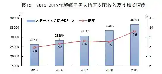 全年全体居民人均可支配收入26076元,比上年增长10.2%。按常住地分,城镇居民人均可支配收入36694元,增长9.6%。其中,工资性收入21027元,增长9.9%;经营净收入6430元,增长9.4%;财产净收入2710元,增长9.0%;转移净收入6527元,增长9.2%。农村居民人均可支配收入16999元,比上年增长10.4%。其中,工资性收入5898元,增长9.9%;经营净收入7500元,增长10.0%;财产净收入473元,增长12.1%;转移净收入3127元,增长12.2%。