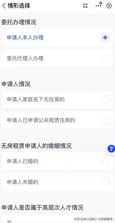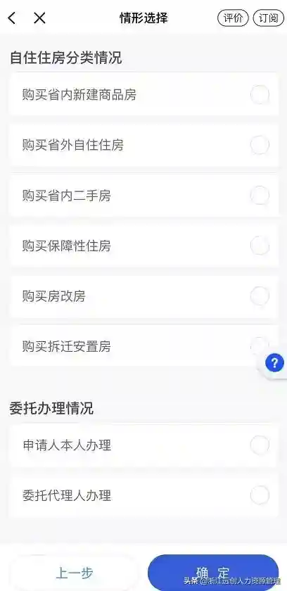 3、以“租赁自住住房提取住房公积金”为例。根据实际情况勾选,选择办理情况