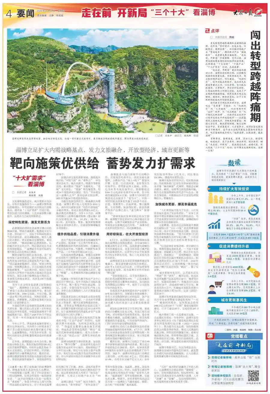 文旅潜能强劲迸发,城市更新步伐加快,对外开放蓬勃有力……淄博市聚焦增后劲稳增长,牢牢把握扩大内需这个战略基点,落实省“十大扩需求”行动计划,需求拉动力持续增强,人民幸福指数不断提升,品质活力之城实现新跃迁。