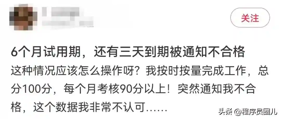有网友在某薯上发文吐槽,表示自己进了一家小公司,试用期是6个月,每个月自己的考核成绩都是在90分以上,看着这个成绩原本以为自己的转正是完全没问题的。可是公司却突然在还有三天到期的时候通知他试用期不合格,让他尽快到公司人事行政部办理离职手续。
